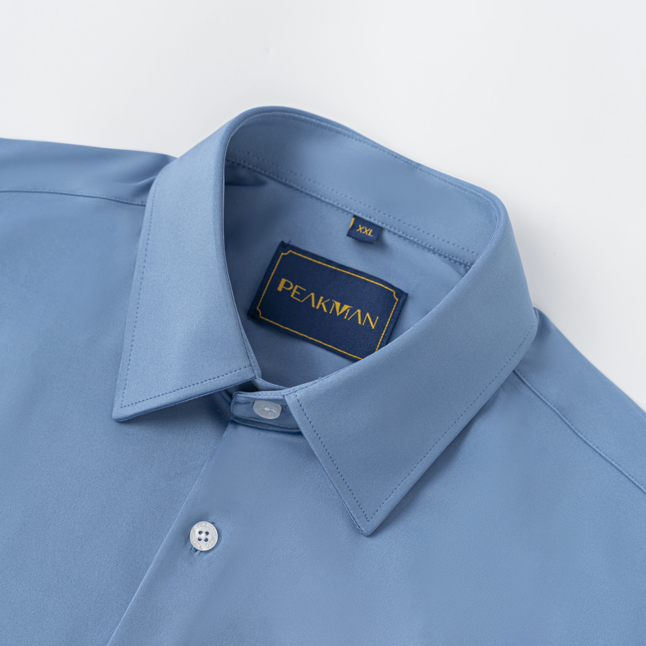 Áo sơ mi xanh co dãn tay thêu cổ đức-SM5018